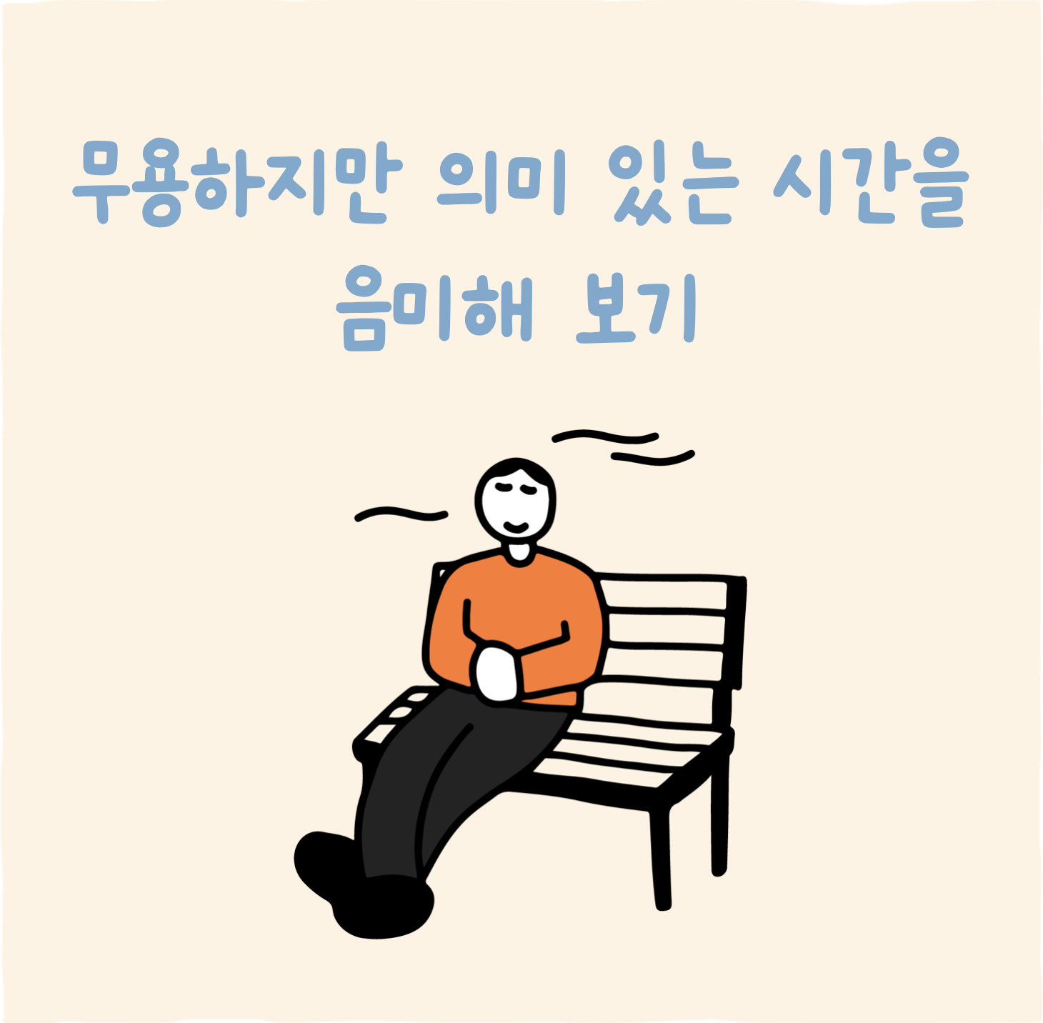 무용하지만 나에게 의미 있는 시간을 음미해 보기 이번 주에는 의식적으로 '생산적이지 않은' 시간을 가져보세요. 아무 목적 없이 산책하기, 바람을 느끼면서 앉아 있기, 좋아하는 음악을 들으며 그냥 느끼기, 명상하며 호흡에만 집중하기 같은 걸 해보는 거예요. 생산성이나 효율과는 상관없이, 그냥 존재하고 느끼고 경험하는 그 순간 자체를 천천히 음미해보세요. 효율과 생산성이 아니라, 그냥 존재하고 느끼고 경험했던 순간들 속에서 진짜 삶의 의미를 발견할 수 있을 거예요. 실천하는 모습을 모두가 볼 수 있도록 SNS에 해시태그 #밑미타임과 함께 올려주세요. 오늘 #밑미타임에 대한 생각과 경험을 이 글의 댓글로 함께 나눠주셔도 좋아요!